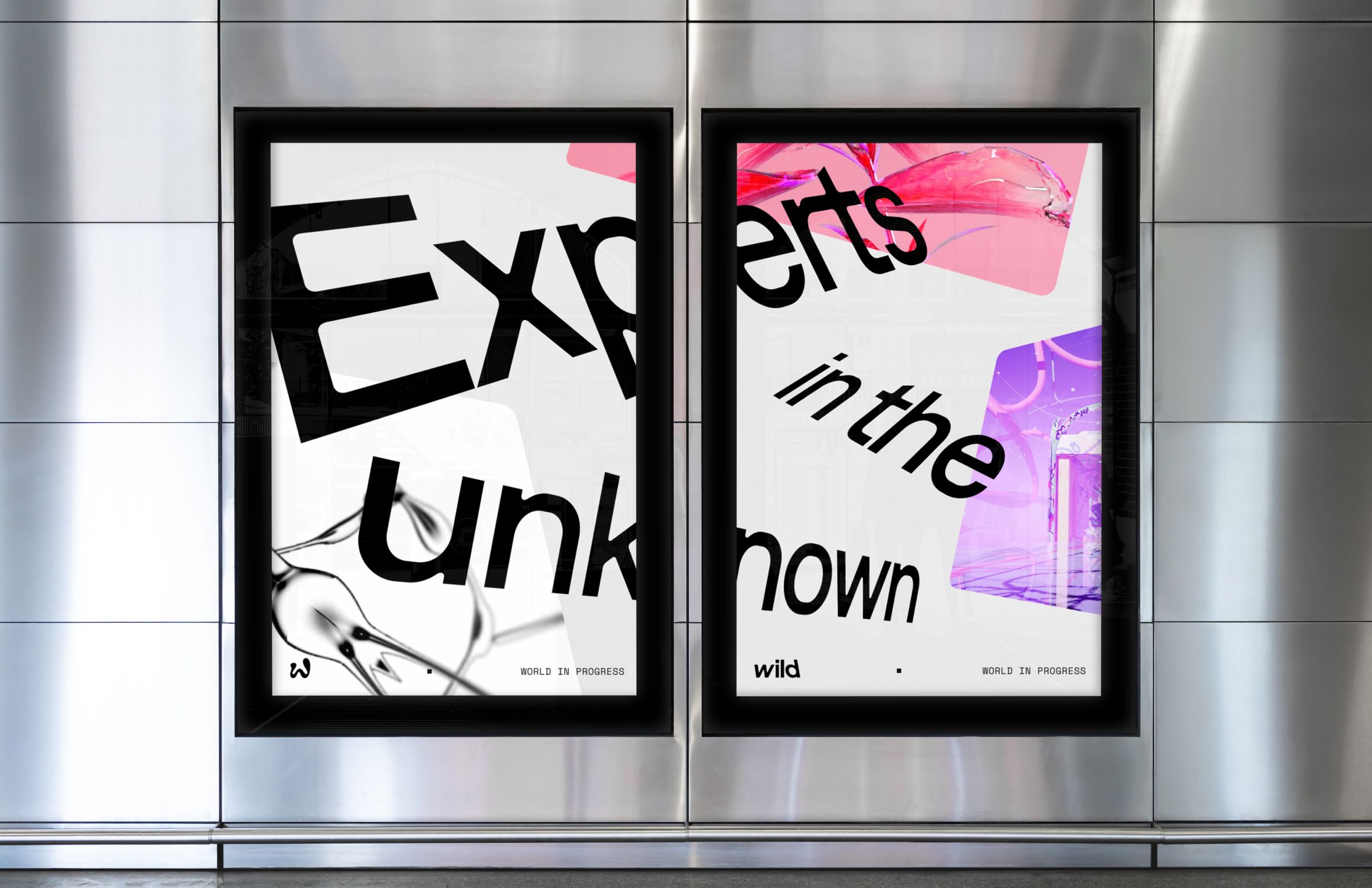 We created a brand that mirrors Wild’s vision of art as a living ecosystem. The identity draws on distortion, movement and light to create a graphic language that feels fluid and sensory. Typography and layouts flex across contexts, from installations to digital campaigns, ensuring coherence without rigidity. The digital platform was designed as an exploratory space, using layered visuals, elastic grids and intuitive interactions to encourage play and discovery. Every touchpoint reflects Wild’s mission: to transform art from a static visual into participatory experience.